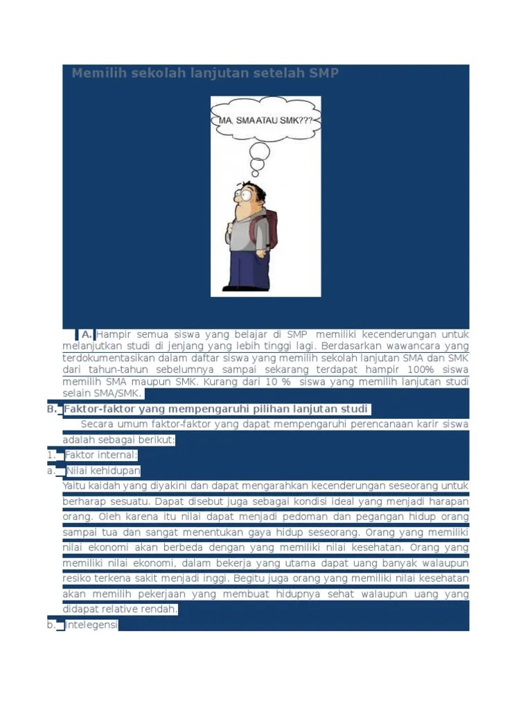 Rencananya kamu mau kuliah atau kerja? Jumat, 08 januari 2021 | 09:22 wib penulis: Karena saya berasal dari keluarga ekonomi menengah ke bawah, saya anak pertama dan 3 adik saya masih perlu biaya untuk melanjutkan sekolah. Sekolah menengah atas (disingkat sma) adalah jenjang pendidikan menengah pada pendidikan formal di indonesia setelah lulus sekolah menengah pertama (atau . Dalam pengambilan keputusan jurusan studi lanjut.